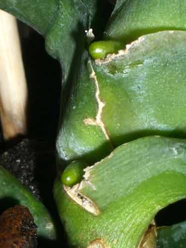 Тут вот еще что: идет очень сильный рост всего, особенно боковых почек на цветоносе. Буквально с самой нижней. А кормлю я его, как и остальные, т.е. умеренно. Вот он и тянет соки отовсюду.