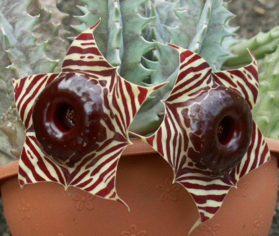 Одно время я тоже заинтересовалась стапелиевыеми - поражало разнообразие форм стеблей и цветов. Но решила остановиться на Гуэрниях - нравится их компактность,не вонючесть и форма цветка. Обожаю Гуэрнию зебрину , она есть у меня,жду цветения.