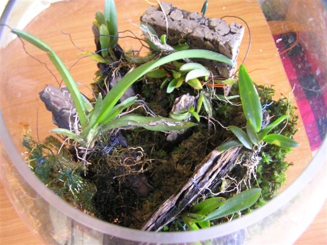 Comparettia macroplectron This is a miniature plant mounted on a small piece of tree fern. . Pseudobulbs are almost undetectable, and the leaves are about 3" (7.5 cm) long. The lip of the flower is about 1-1/2" (3.5 cm) wide, and the flowers have a long spur.