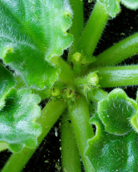Лист фиалки с маленькими кустиками выдал цветок. Это мутация? Или фиалка торопится цвести?