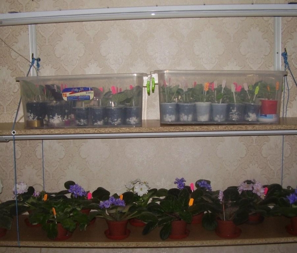 А мне муж сделал на 2-х стеллажах верхние лампы на таких штуках (они продатся в строительных магазинах, называются "порожки" - ими прибивают пороги, мы прибивали ковролин там где у нас пороги между комнатами). Вот он его согнул, продырявил и прецепил туда лампы, лучше что бы лампи светили сверху, а не с боку