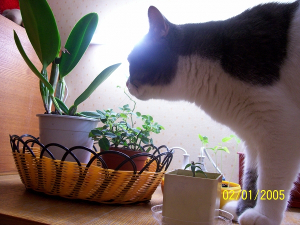 Svetka, Барсик - лапочка. Мой кот тоже любит в цветах поспать. А у меня там еще подстилочки шерстяные в цветнике - для тепла, так его оттуда вообще не согнать. Раньше еще и кошка туда лазила, но сейчас растолстела, не получается у нее. :)