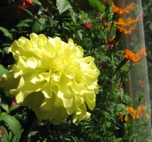 А я с дачи примчалась, а на балконе (там где рассада) сплошные джунгли. Конечно, в балконных ящиках, подвешенных снаружи все это смотрелось бы красивее, а так все в одной куче на столе. Все переплелось - гибискус, бегония ампельная (цветет только оранжевая, остальные - сачкуют), чернобрывци, бальзамины и всяка мелочь.