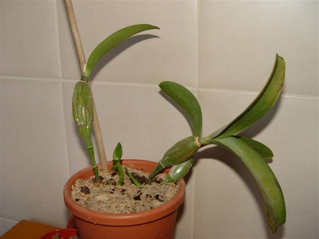 у меня пришла миниатюнрая 2листная каттлайка из Тая, на на одной бульбе у нее 4 (!!) листа-и катастрофы не вижу. Рома, у меня было такое разок-от места, где формируется цветочная почка, вылезла маленькая детка, правда, быстро погибла-грибок сожрал.