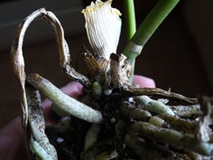 я сухие корни не удаляю-худо-бедно но хоть часть влаги они растению доставляют.