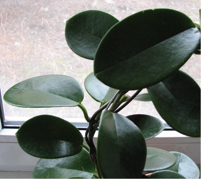 Стоит на восточном окне,выходящем на застеклённую лоджию. Подозреваю,что именно это ей и понравилось: солнце до обеда, и есть возможность опустить жалюзи,если совсем палит. На воздух не выношу,так и стоит зимой и летом на одном месте. Листья протираю разведнным кефиром-молоком-сметаной,что есть под рукой-блестят,как после лака. Периодически,ес-но купаю,но редко. Вот перевалила,потому как просто край настал-голые корни были.Вот теперь думаю-обидется или нет ;-) Вид аккуратный потому, что жду,когда плеть окончательно куда-нибудь*завинтится* за шторину,например, и прикрепляю её горизонтальной змейкой верх к лесенке.Таким образом плети не путаются,не обламываются цветоносы и при пересадке не приходится привлекать окружающих.Просто ставлю на пол ,раскручиваю проволочки и раскладываю плети на полу,потом выдёргиваю лесенку и переваливаю цветок.Ну а потом- в обратном порядке.В этот раз измерила побеги... Побегов 4 штуки по 2,5 и 3 метра,ну и боковой мелочи по-моему 3 штучки см. по 50.