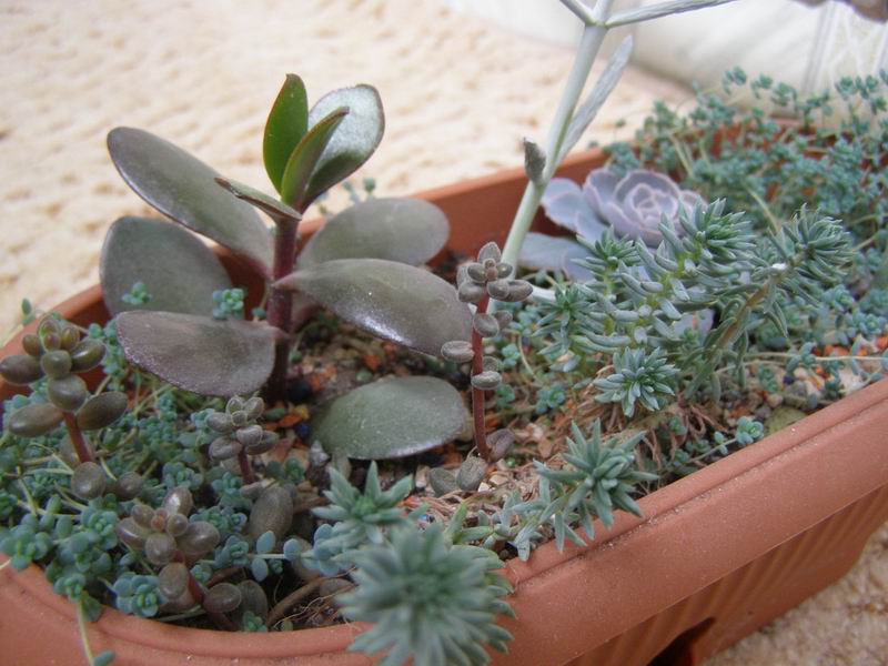 я давно придумываю чего-бы использовать для композиции: горшки высокие и глубокие, поддоны обычно слишком низкие (боюсь что земли будет маловато), а специальные низкие горшки в магазинах денег немеряно стоят... у меня тазик используетсявыглядит прикольно...