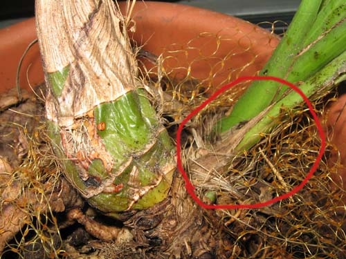 А, ещё он в тесном горшке уж лет 6 растёт. крайние бульбы аж поврезались, этого года. Корней у него мало там помещается, но не выталкивает же сам себя. Подозреваю, что корни у него "сезонные" когда их становится слишком много в горшке - пропадают, нарастают новые.