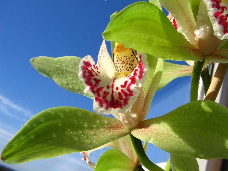 Теплолюбивые цимбидиумы я вывезла в июне на природу, нашла тенистое место под деревом, куда немного попадало солнце, и влажность была достаточной, росты были уже большими, и я хотела протсо довести их до цветения перепадами день/ночь , тем более, что деть эти цимбики было всё равно некуда.)