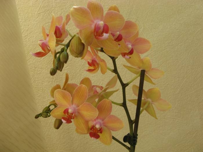 А у меня вот чего цветет. реально желтый, без всяких " и не очень". Подлец, конечно, только 2 цветка и я этим фактом жутко разочарована, надо быть поглазастей. Тут тема обсуждалась об отпуске и уходе за орхидеями: так вот- цветоносы развивались очень и очень быстро-2 недели всего. И они были настолько тонкими и неприметными, что я их проморгала и дала инструкцию поливать в прежнем режиме., а надо сушить. Цветоносов 15 было-выжило только 2.