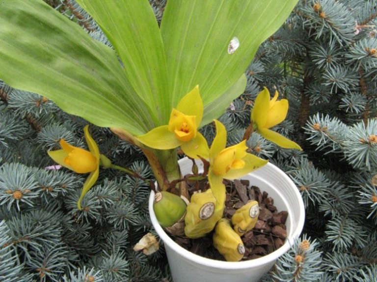 Сейчас у меня цветет lycaste cruenta. Была получена весной прошлого года из Мексики. Зимой сидела в сухости и прохладе. Цветоносы начала выпускать, когда новый рост с листьями достиг 30 см.