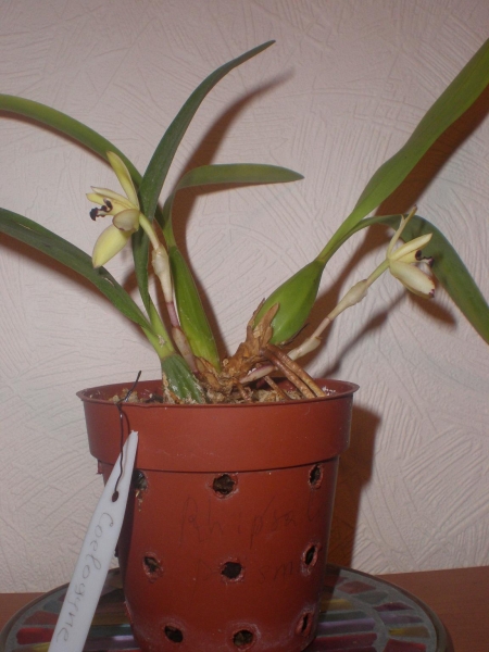 Ну завелась она у меня еще при двух бульбах, а третью выростила в этом году. Надо сказать внимания никакого к себе не требует, единственно стоит на керамзите с водичкой, и поливается достаточно часто. Почему-то цветы все время по два, может это что-то значит?