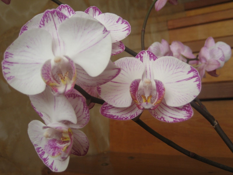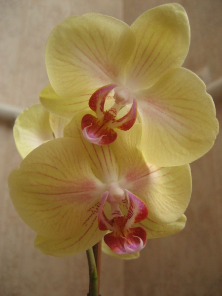 Запах очень сильный карамельно-кисло-сладкий, очень приятный. Цветение, к сожалению, магазинное, сейчас активно растит молодые росты, корни. Куплена свежайщей в первый день завоза на склад, тем не менее растение было жестоко залито и пыталось от корня загнить. В общем, пока реанимация, а там, если, ттт, все будет нормально, подумаем и о цветении, пока не до него