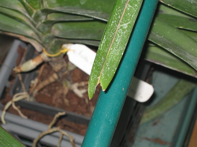 Говорят, был в ботсаду случай, когда ангрекумы продавали как ванды, напутали что-то. По крайней мере листья у него не совсем как у ванды, он округрые, как бы сердечком на концах, а у ванды наоборот, вырезаны вовнутрь.