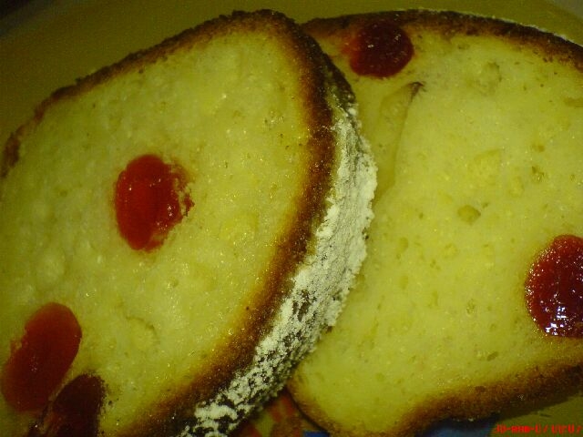 А я вчера испекла кекс с вишней и пирог с ананасами.