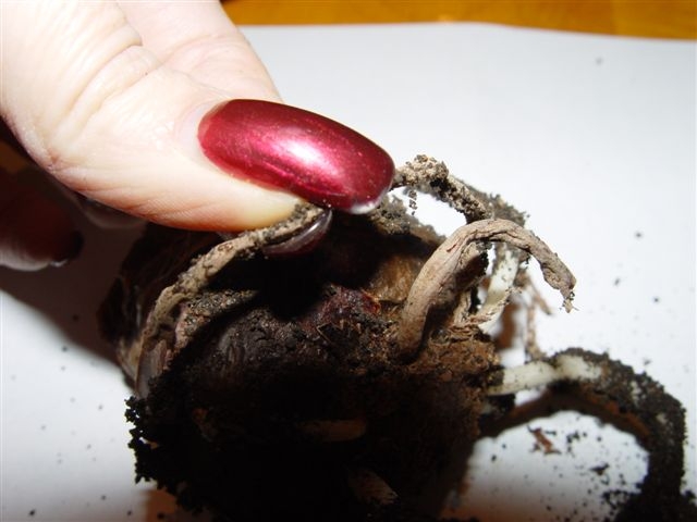 Посмотрим на корни - сухие, пустые и неживые корешки цветочку уже не понадобятся, их можно удалить.