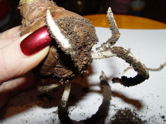 Банально звучит, но Вам действительно досталась сильная, крепкая луковичка, которая через несколько недель порадует Вас необычайно красивым букетом цветов на одном мощном цветоносе!