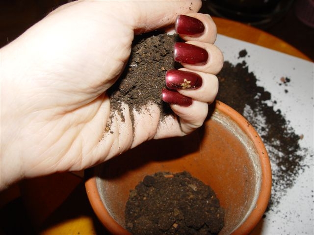 Досыпаем грунт. Для этого можно воспользоваться пластиковой "одноразовой" ложечкой.