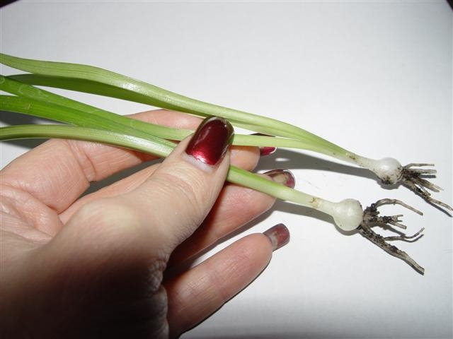 Такую вот луковку-детку, которую мы видим на фото, отделять ещё рано.