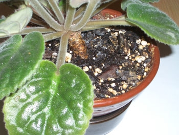 Конечно, каждый, кто любит своих питомцев,постарается не довести их до такого состояния, когда ствол у фиалочки вытянутый и скрученый, покрыт коричневой корой а листики остались только на верхушке...