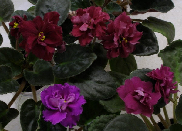 А я вот мечтала одновременно вырастить Сады Семирамиды, Бой Быков и Танцующее Пламя. Но, не сложилось. Может те, у кого есть эти фиалочки попытаются их вместе сфотографировать?