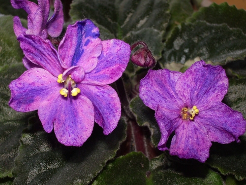 Итак, фиалка Mac`s Circus Clown, сорт должен быть с синим фэнтази. Я брала на выставке лист от спорта, т.е. без фэнтази. Лист дал 2 детки, одна процвела как положено спорту, а другая дала химерную окраску