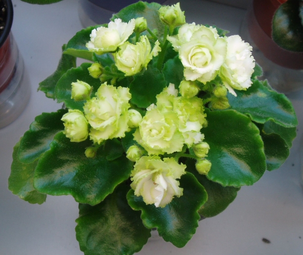 Вот это букетик $:006 Я конечно не любитель зеленоцветковых фиалок, но эта меня впечатлила! Как я ее на выставке пропустила $:014 Вот как полезно Лора смотреть твои репортажи, ведь на выставке сколько не смотри, а все-равно что-то пропустишь $:021