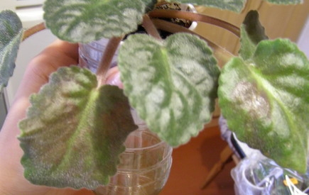 Но на нижней полке стеллажа таких листьев было много (этот куст пострадал сильнее всего). Пришлось его пересадить, а полку затянуть пленкой.