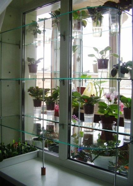 Я на окне и не думала делать полок, но мужу наверное так надоели фиалки по квартире расставленные (которым не хватило места на стеллажах) так он решил сделать пролки на окне, хотя я к ним была еще совсем (морально) не готова. Но, получилось хорошо.