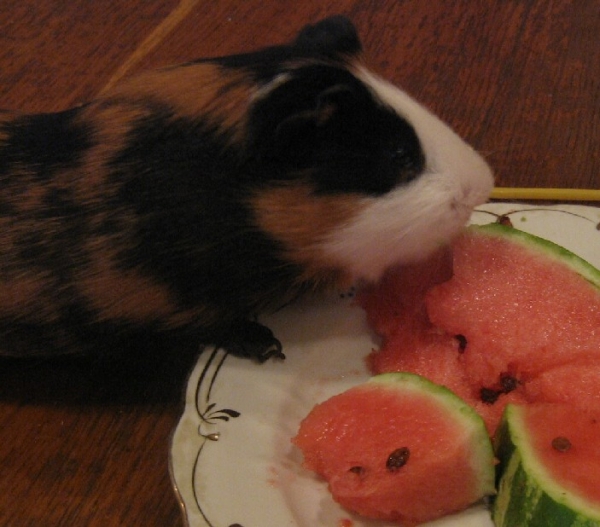 Силма, у нас та же картина наблюдалась. Как только вхожу в комнату, свин на задние лапки!!! И корм она тоже почти не ела. Выбирала только специальные спресованные гранулы. Я это дело сразу поняла и почти не давала ей его. Огурци- это ее любимое блюдо. И яблоки, но сладкие. И еще капуста. А насчет травки- так я ее однажды вынесла в лес попастись на травке, так она, бедненькая, так перепугалась, что ей совсем не до травки было. Она пыталась заныкаться в заросли и при малейшем постороннем звуке замирала от страха. Больше я такого не делала. Только приносила ей из лесу травку(листья одуванчика) и она с радостью их хрумала. А еще весь корм на протяжении дня давала по чуть-чуть. Тогда она его целиком и полностью съедала без остатков. Вот так.