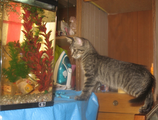 У меня недавно тоже появился маленький и мохнатый найденыш. Был героически спасен одной знакомой от стаи собак и принят мной на дальнейшее проживание. Давно у меня небыло кота... даже подзабылось то, насколько они подвижны в юности