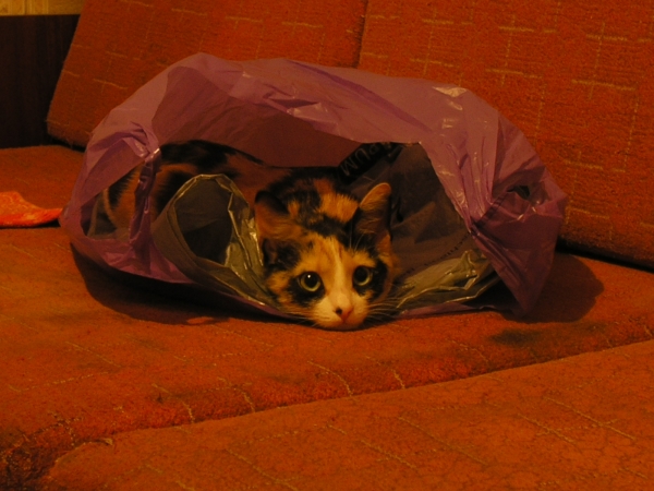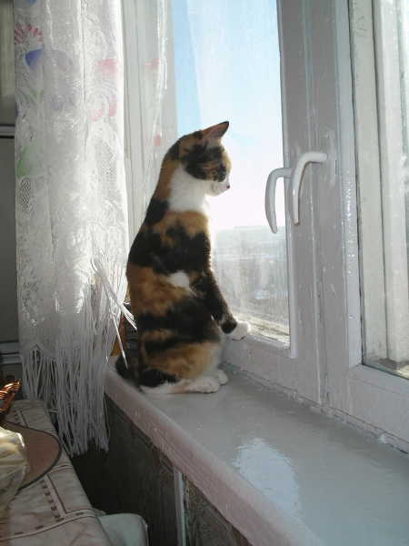 Ей тогда было полгода, был конец осени. Я как обычно прихожу домой (было уже темно, поэтому меня на остановке встречал муж). Мы пришли, переоделись, покушали и сели смотреть какой-то сериал. И вдруг я вспоминаю, что ещё не видела свою кошечку. Давай её искать по всей квартире. А она любитель залезть во всякие дырочки и сидеть там тихо, но когда потрясти пачкой корма, она всегда прибегала, плюс ко всему она очень любит, если открыто окно или балкон, сидеть на краешке карниза или на периле балкона, а мы живём на 8-ом этаже (я, когда это видела, у меня сердце в пятки уходило). Я начала трясти этим кормом - не бежит. Тут меня осенило - у нас открыты окно на кухне и балкон