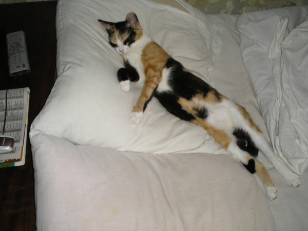 Ах да ещё одно - утром она не будет, а наоборот убаюкивает своим мурчанием. Она растягивается возле меня на подушке, а я люблю ткнуться носом в её бок и так мы можем хоть целый день проспать.