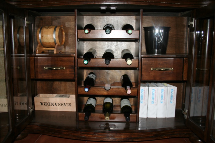 У меня бар организован таким образом: есть винный шкаф для самых дорогих сердцу вин