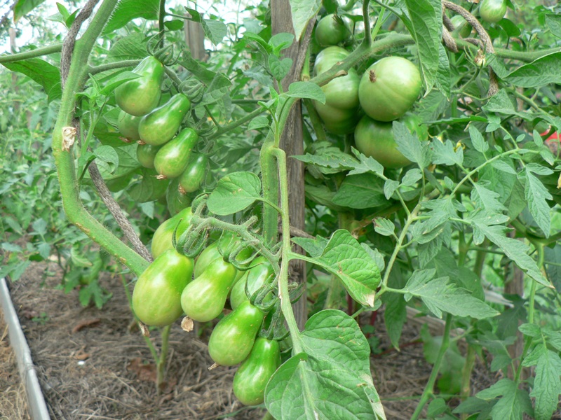 Вот обещанные фотки помидосиков, жалко, что зеленые, не вызрели в том году, поздно посадила, а осень задождила сильно...
