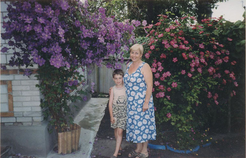Сначала я придерживался советов из садовой литературы, где, согласно европейской методике, говорилось, что корни клематиса не выносят солнечного пекла, поэтому, мол, с южной стороны куста нужно сохранять «газончик». Вот этот-то «газончик», насколько я понимаю, и стал первой ошибкой для многих наших садоводов средней полосы, у которых клематис так и не смог набрать силу. Дело в том, что эта лиана лучше всего растет как раз на солнечном пекле, жары она совсем не боится, а боится остаться без воды. Это разные вещи. Нужно знать условия Европы: там намного суше, чем у нас, почвы чаще всего имеют более глубокий корнеобитаемый слой. И еще одна «мелочь»: европейские садоводы гораздо меньше наших поливают свои садики, так как вода у них стоит денег. Я не раз убеждался, что европеец будет упорно ждать дождя, даже если его сад замрет в обезвоживании, но не возьмется за шланг! Поэтому для него защитная травка около растений очень даже уместна. У нас же плодородный слой почвы часто имеет толщину всего несколько сантиметров и снизу близкий водоупор, куда корни клематиса проникнуть не могут. Теперь оцените биомассу куста, увившего сетку,- это несколько килограммов зелени и сочных цветков - где куст возьмет столько питания, если все питательные вещества достались сорнякам? Нельзя вслепую перенимать иноземные приемы. Таким образом, если вы хотите иметь сильный куст, то в первую очередь земля площадью 1 квадратный метр должна быть предоставлена ему одному. Поверхность земли, с которой срезаны сорняки, можно смело открыть солнцу, при этом не забывая о еженедельном поливе. Для сохранения влаги можно положить с южной стороны плитку, но не впритык, а отступя 30- 50 сантиметров.