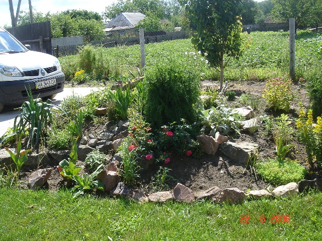 Возле пионов внизу виден можжевельник казацкий. Он вообще-то огромный. А справа - магония падуболистая, она внутри можжевельника растет. А сиреневое на пятой фотографии - это лаванда