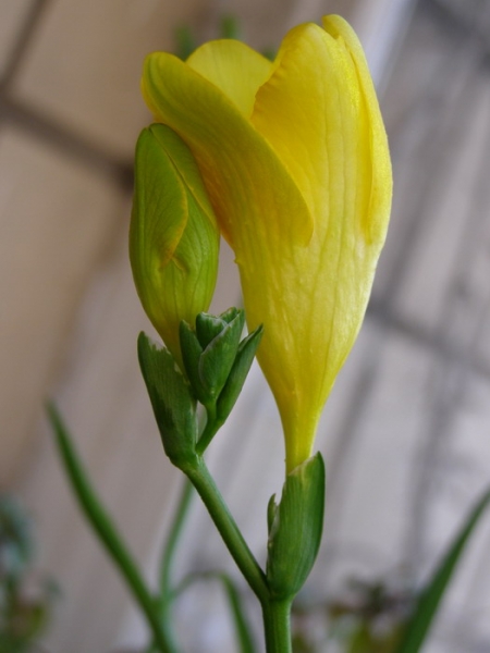 Только перед высадкой в грунт я их прорастила: в плоскую плошку с бортиком выстелила вату и налила водички, сколько вата вбирает. Положила луковички фрезии и на холодильник. Там светло и тепло.