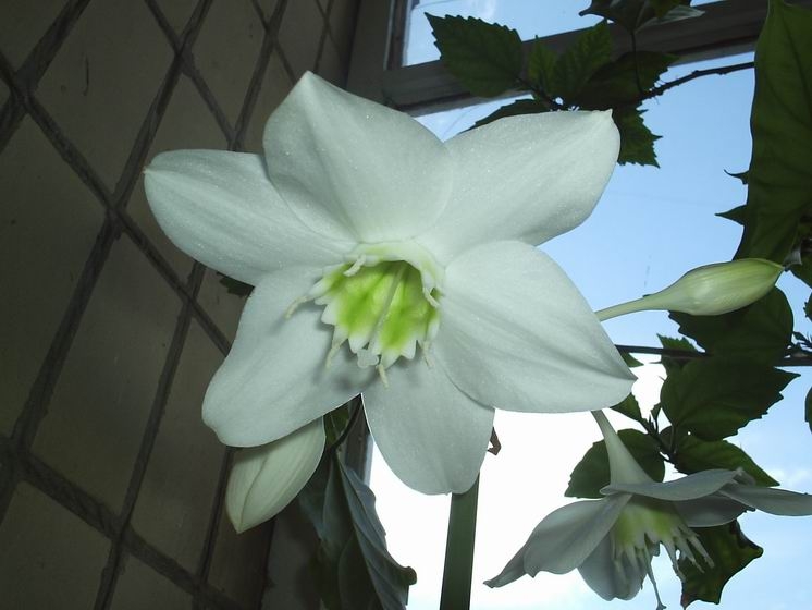 . Поливаю в поддон в зависимости от погоды: раз-два в неделю, сейчас кормлю Кемирой. Все время растет на северо-восточном окне. Еще забыла сказать, что эухарис не любит частые пересадки. Вот такие у нас с ним отношения