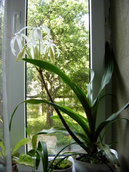это кринум, то, что любит открытый грунт это точно и всегда после этого цветет, дома ему солнца не хватает видать.