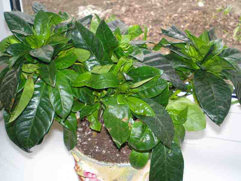 Гардения не цветет. В том то и дело. все бутоны зеленые. Не раскрываются. И один уже отпал.