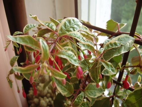 Обожаю ятот сорт. Единственный его недостаток - это раскидистые ветки, хотя это может быть и достоинством. Сорт гигант с мощными цветками и хорошим иммунитетом. Цветение его не дает никому пройти мимо. Его длиннющие не раскрывшиеся бутоны и рядом огромные пестрые цветки привлекают внимание всех. Это первый сорт, цветение которого обратило мое внимание на фуксии, как красивоцветущие растения.