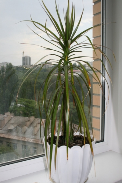 А ещё мне два с половиной года назад на день рождения прдарили махонький черенок в горшочке с бирочкой "мини-драцена". Типа триколор - трехцветная. Похоже, хомячок грозится вырости медведем...