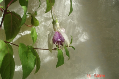 Сначала она болеее фиолетовая, а потом светлеет и теряет синие оттенки. Это свойство всех фиолетовых фуксий. Чем прохладнее, тем более контрастный и дольше держится синий цвет.