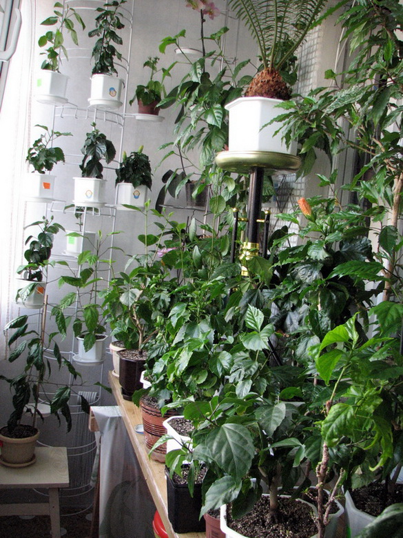 У меня 2 лоджии (6 и 3 метра), плюс 4 окна, общей длинной около 6м. На моем окне еще полка, и пока 2 стойка по 11 горшкомест. Буду еще одну стойку покупать, а когда подрастут, придется приобретать что-то типа кованой, тк тяжеловато распорке будет.