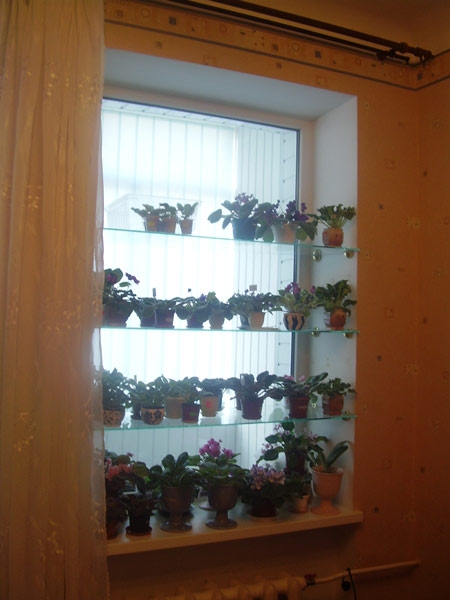 Нет, мое окно с полочками выходит на балкон-это глухой стеклопакет, в котором поместилось 4 полочки из стекла 5. Как нибудь сфотографирую и покажу.