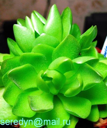Я одну розеточку разобрала на отдельные листочки, они повалялись недели две и только потом дошли до них руки - воткнула во все вазоны с орхами на балконе (чтоб мушек при случае ловили) - все принялись. Полив очень разный: те, кому посчастливилось подселиться к влаголюбивым орхам - регулярно купаются под краном (про дистилят они даже не слышали), те кто живет с просушиваемыми растениями тоже неплохо себя чувствуют, так что думаю, что далеко не все жирянки капризные растения.