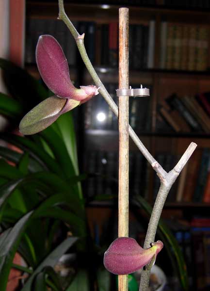Я думаю, что дело не в этом, потому, что и та и другая. Дело, думаю, все-таки в том, как я их кормила. Покупаешь доходяг, в том числе с дохлой корневой системой, приносиш домой и начинаеш их реанимировать. В городской квартире центральное отопление воздух подсушивает, а листья нужно на этом свете удержать. Умная немецкая книжка пишет, что орхи много питательных веществ усваивают листьями из конденсата (росы), который выпадает при смене периодов дня (утром или вечером). Поэтому я использовала такую рецептуру: на баночку из под 400-грамового йогурта этой воды 1-2 капли жидкого удобрения и ваткой протирала листочки. Растениям это дело так понравилось, что они в достаточно спартанских для орхидей (стоят на подставке недалеко от окна, а значит и от батареи), не только сохранили листья, а и нарастили ботву. Но здесь я я действительно, думаю, перестаралась. Орхам так понравилось питаться через листья, что они начали гнать ботву в самых неожиланных местах, а, по крайней мере, один из фаликов цвести уже отказывается. Но это проблемы всех декоративноцветущих - перекормиш: ботва -