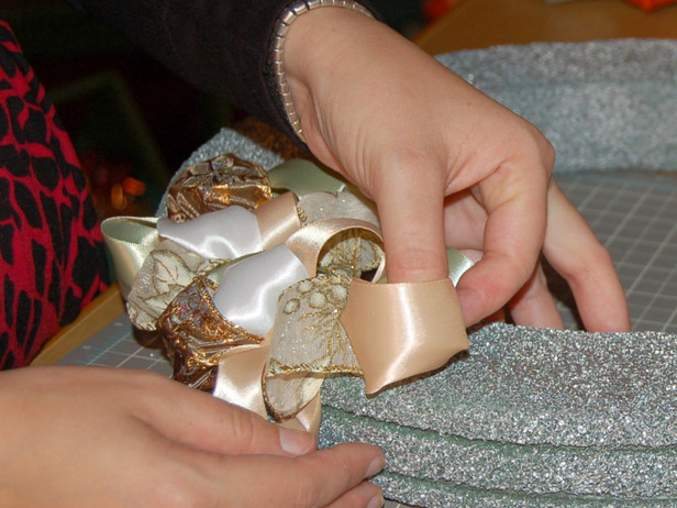 Все эти загогулинки ленточные прикалываются булавками? Если да, то это скока ж иголок надо?