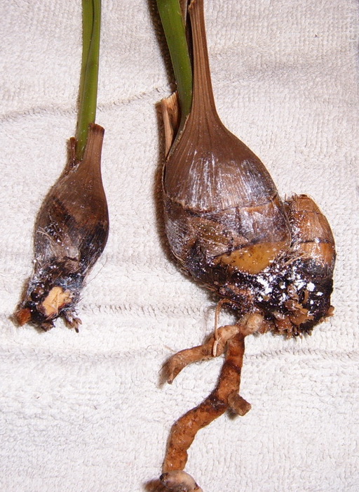 темно-красные луковици свидетельствуют о розовой или бардовой окраске цветков.